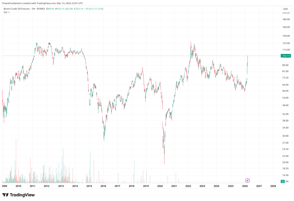 Der Ölpreis liegt inzwischen wieder deutlich über 100 USD. Hintergrund sind Sorgen über mögliche Lieferstörungen im Persischen Golf und eine teilweise Beeinträchtigung des Schiffsverkehrs in der Straße von Hormus, einer der wichtigsten Ölhandelsrouten der Welt. Ebenso haben Katar und Irak die Förderung gestoppt.