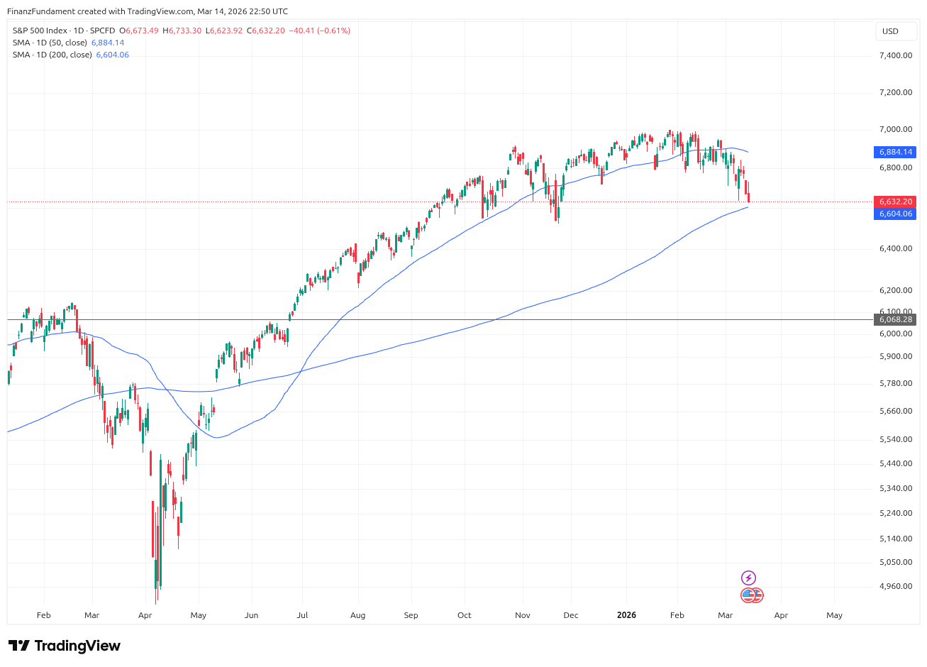 Der S&P 500 befindet sich technisch in einer kritischen Entscheidungszone an der 200-Tage-Linie.